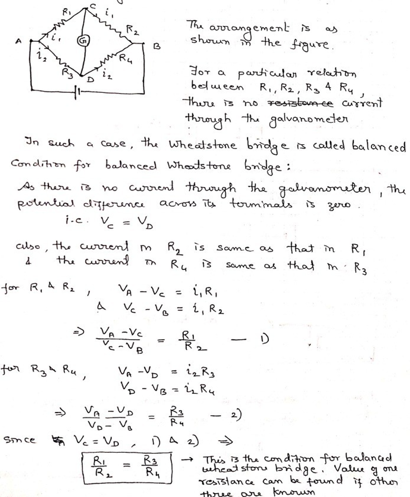 Theory- The Wheatstone bridge works on the principle of null deflection, i.e. the ratio of their resistance is equal, and no current flows through the circuit. When the bridge is balanced,