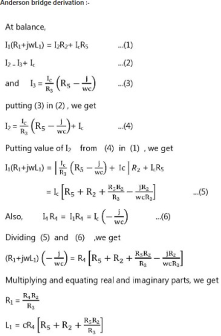 Theory– The Anderson bridge is a bridge circuit used for measuring unknown resistances, especially those with high values. The bridge is balanced when the ratio of the resistances in the adjacent arms is equal.