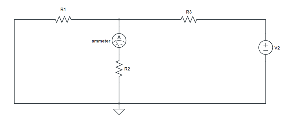 - Set the same voltage in circuit 1 using V1 alone and short circuit the other terminals, note the ammeter reading. (Figure 2)
