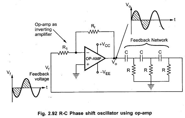 The phase shift introduced by each RC section in the network causes the feedback signal to be shifted in phase as it travels through the network. The total phase shift around the feedback loop is set to 360 degrees (or 0 degrees) at the desired oscillation frequency. This phase condition is necessary for sustained oscillations to occur.