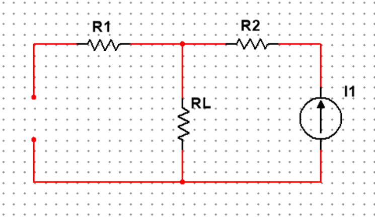 The simplified Norton equivalent circuit, shown in Figure below, can now be used for calculations for any linear load device connected between the connection points.