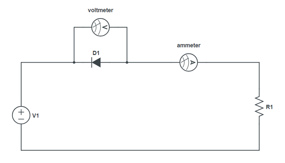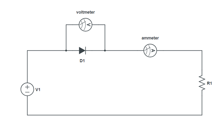 P-N Junction Diode, Battery, Connecting Wires, Resistances, Voltmeter, Ammeter.