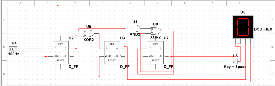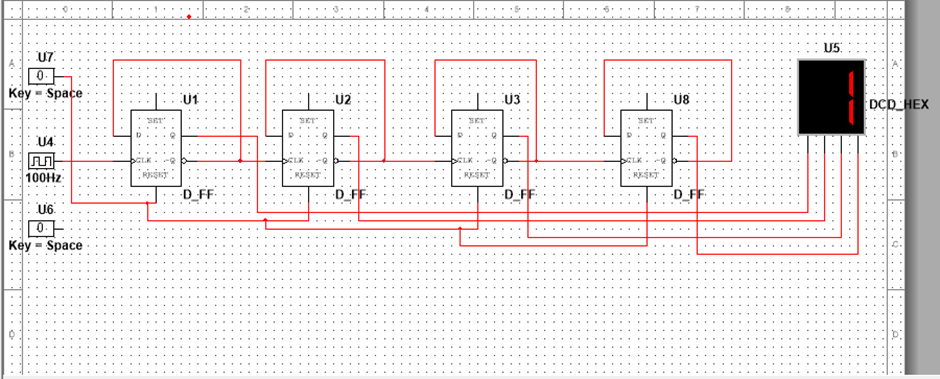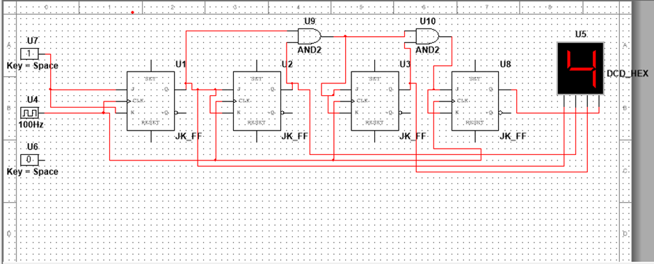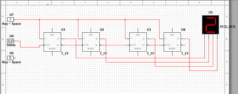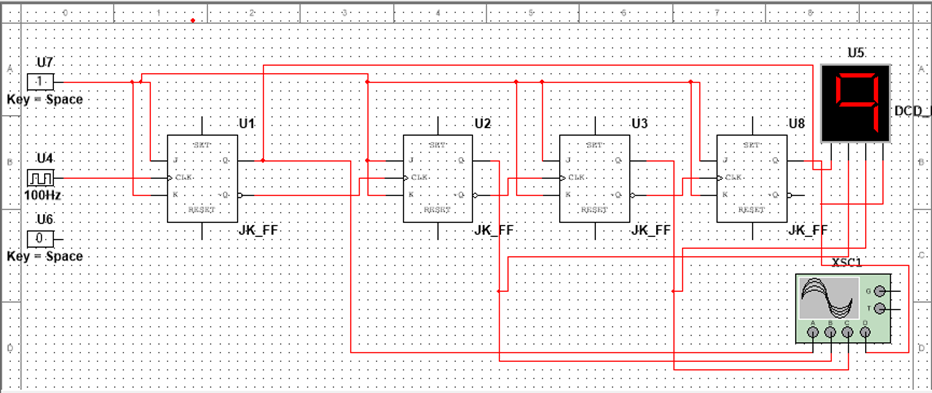 jk flip-flop, D flip-flop, T flip-flop, connecting wires, digital signal inputs, display.